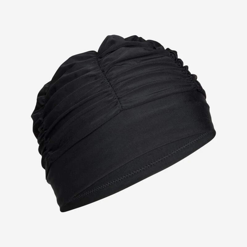 Un bonnet de natation en maille avec un grand volume pour les cheveux, résistant au chlore. Facile à mettre, il ne tire pas les cheveux.