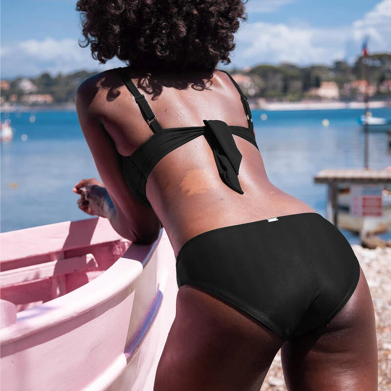 La culotte de maillot de bain Nérée, pour les flux léger, contient une protection invisible qui ne gonfle pas dans l’eau.